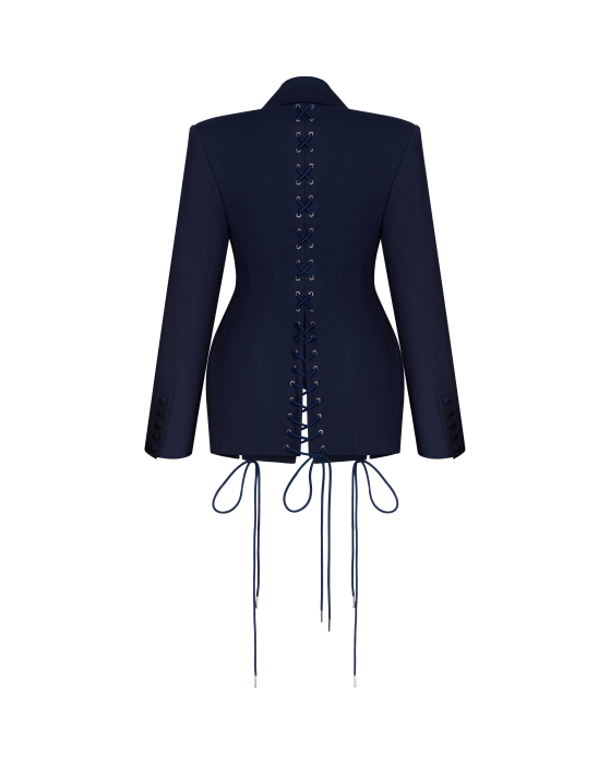 Jachetă din atlas gros, cu siluetă bine definită, disponibilă în mărimile S și M. Am adăugat un detaliu accentuat de legături pe spate pentru un plus de ajustabilitate și efect vizual, care subliniază talia și oferă o notă de eleganță seducătoare.